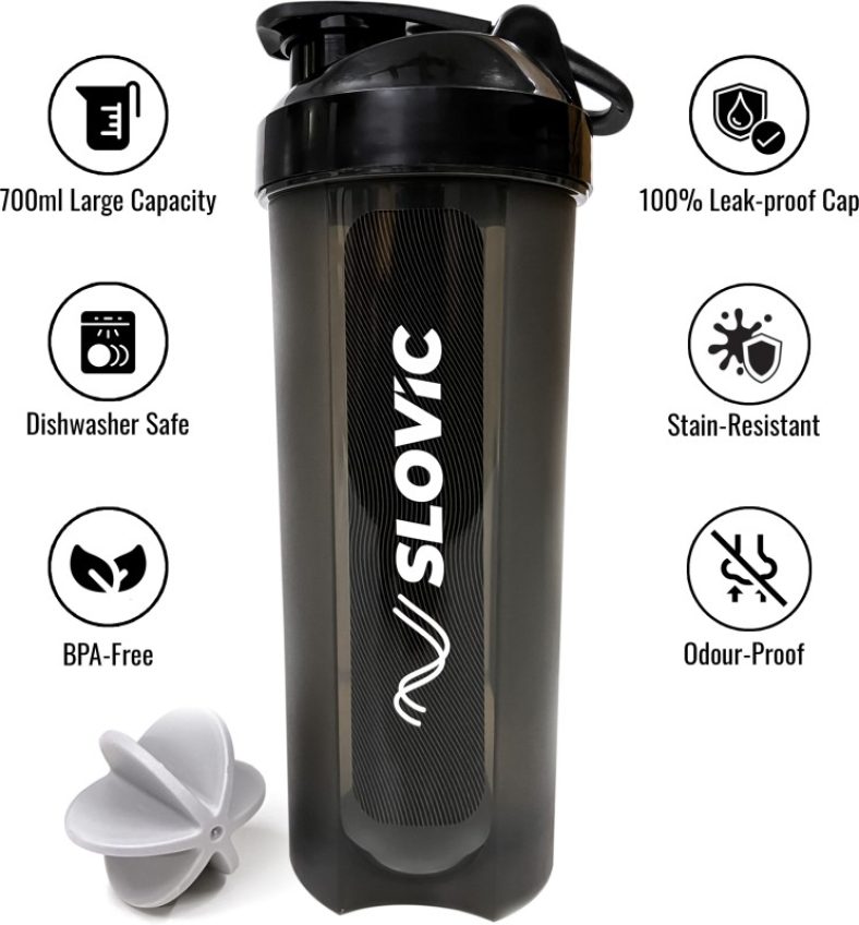 Slovic Leak-Proof Gym Shaker | Protein Shaker With Typhoon Blender | Bpa-Free 700 Ml Shaker(Pack Of 1, Black, Plastic) is available on Flipkart at best discounted online price. Original of this product is ₹ 399.0. You can buy this product at discounted rate ₹ 209.
