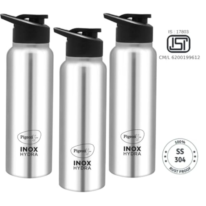 Pigeon By Stovekraft Inox Hydra 700Ml Pack Of 3 Stainless Steel Drinking Water Bottle 700Ml Flipper Cap- Silver (1 Year Warranty) is available on Amazon at best discounted online price. Original of this product is ₹ 1185.0. You can buy this product at discounted rate ₹ 529.