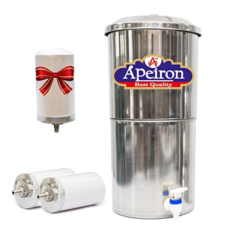 - 21 LITRE CAPACITY- The portable Apeiron Purification System effortlessly purifies water for about 9-10 people each day.; 1. Assembling- Refer to user manual. 2. Operation- Fill the top container with water, and leave it overnight as it takes time to filter, after repeated use filtration speed will increase as pours of candles open up. Advisable to fill it at night and refill as and when required.