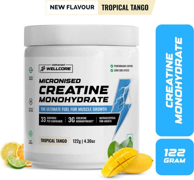 Wellcore Micronised Creatine Monohydrate | Lab Tested | Enhanced Absorption | 100% Pure Creatine(122 G, Tropical Tango) is available on Flipkart at best discounted online price. Original of this product is ₹ 749.0. You can buy this product at discounted rate ₹ 539.