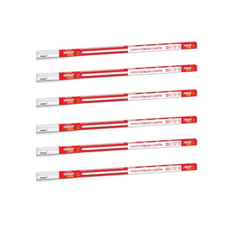 Eveready 20W Led Batten | Ultraslim | Highly Efficient | 100Lm/W | Fire Retardant Pc Body | Lasts Upto 25000 Hours | Pack Of 6 | 4Kv Surge Protection | Bis Approved | White, Cool Day Light is available on Amazon at best discounted online price. Original of this product is ₹ 4170.0. You can buy this product at discounted rate ₹ 840.