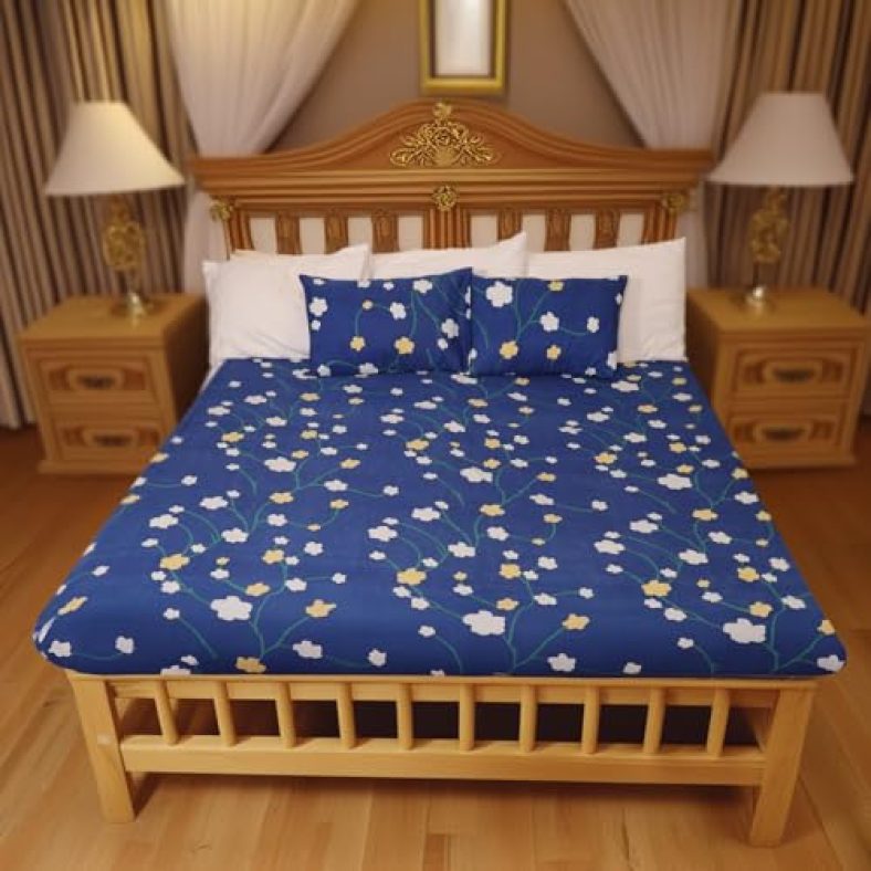 - Luxurious Cotton Feel: Drift into a realm of unparalleled comfort with our cotton-feel double bedsheet set, meticulously crafted to replicate the luxurious texture of cotton. Paired with two pillow covers, this set not only ensures a coordinated look but also offers a plush, inviting surface for your ultimate relaxation.