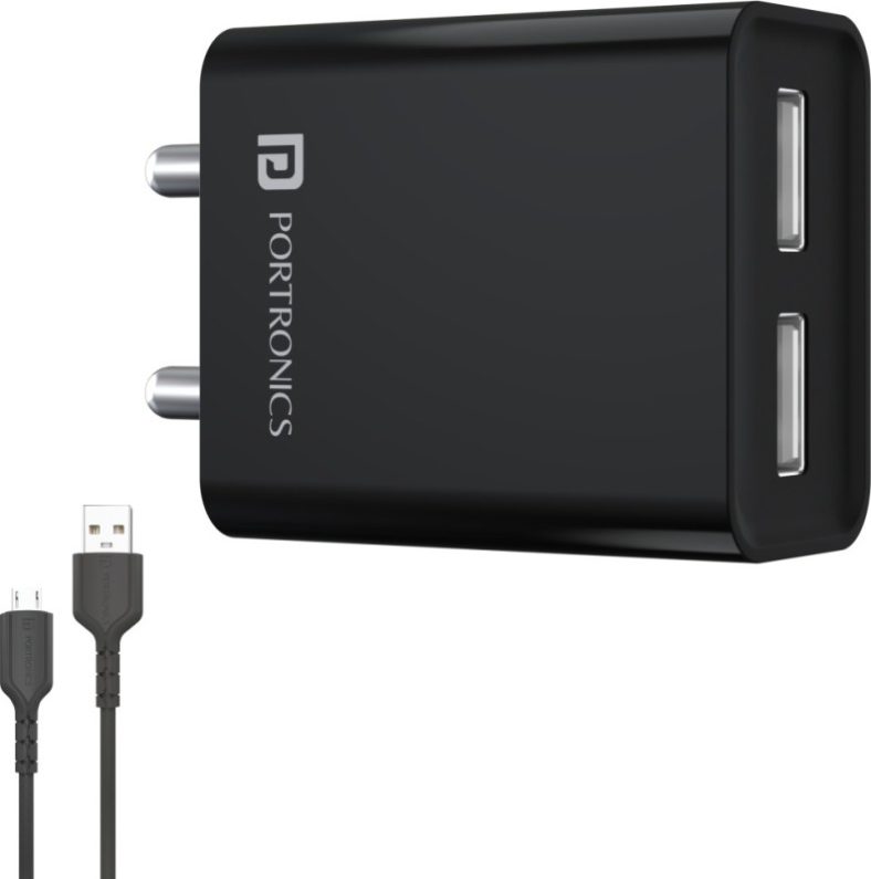 Portronics 12 W 2.4 A Wall Charger For Mobile With Detachable Cable(Black, Cable Included)