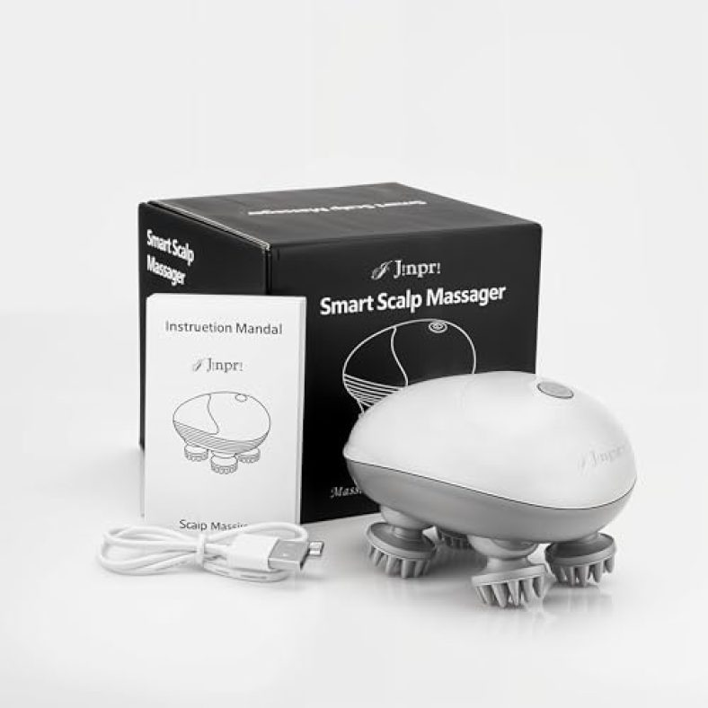Jinpri Electric Head & Scalp Massager | Handheld Rechargeable Massager With 3 Speed Settings | Portable Stress Relief Device (Automatic)
