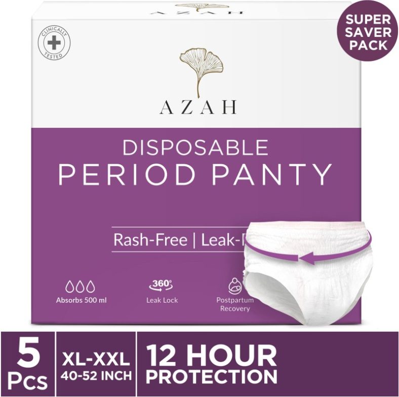 Azah Period Panty Pad For Women 5X Super Absorbent | Xl-Xxl| Panties 360 Protection| Sanitary Pad(Pack Of 5) is available on Flipkart at best discounted online price. Original of this product is ₹ 329.0. You can buy this product at discounted rate ₹ 179.