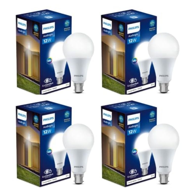 Philips Stellar Bright 12-Watt Led Bulb B22 Base (Crystal White, Pack Of 4)