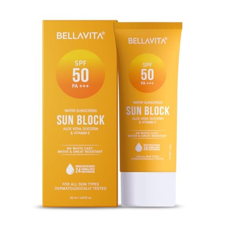 Bellavita Water Based Hydrating Sunscreen, Spf 50, Lightweight, Photostable, Pa+++, For All Skin Types, No White Cast, Non – Greasy Finish, Uv Protection, Broad Spectrum, For Men & Women, 50Ml is available on Amazon at best discounted online price. Original of this product is ₹ 399.0. You can buy this product at discounted rate ₹ 149.