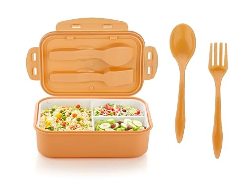 - 🍱 Complete Set : Lunch Box with 3 Compartments, 2 Spoons, and Stylish Lid. 3 compartments for convenient organization of your meals, keeping food items separate and fresh.This lunch box includes 2 spoons, eliminating the need for additional utensils and making it perfect for on-the-go dining at school, office, or outdoor activities.