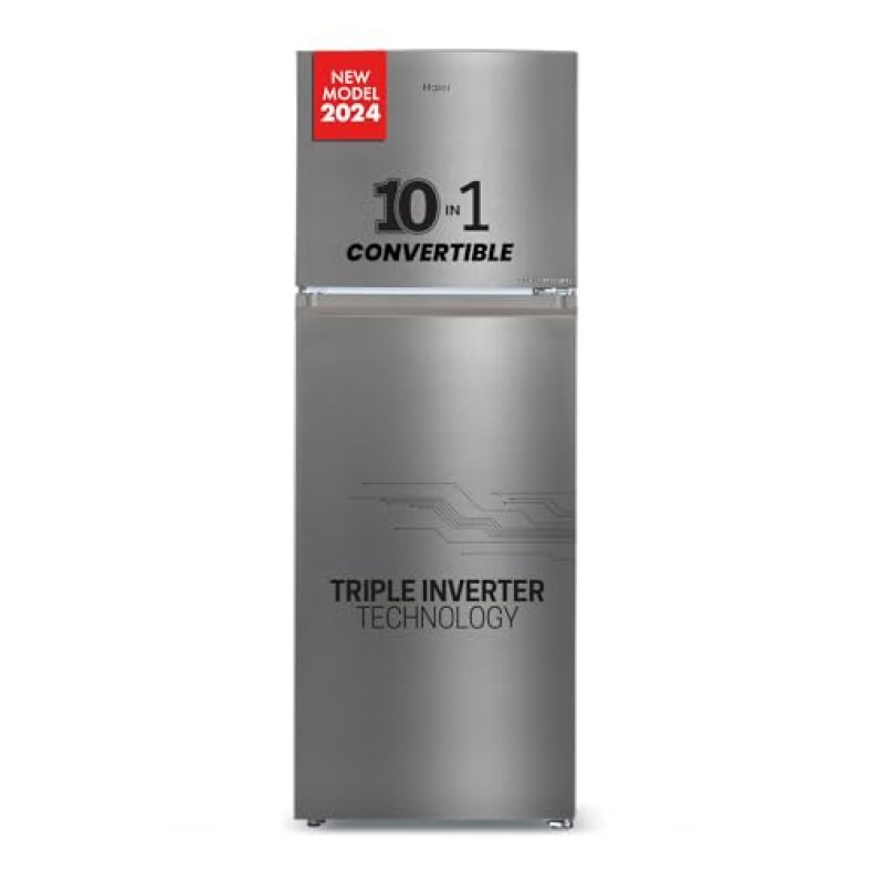 Haier 328 L, 3 Star, Convertible 10-In-1, Triple Inverter & Dual Fan Motor Technology, Frost Free Double Door Refrigerator (Hef-333Ts-P, Inox Steel, 2024 Model)