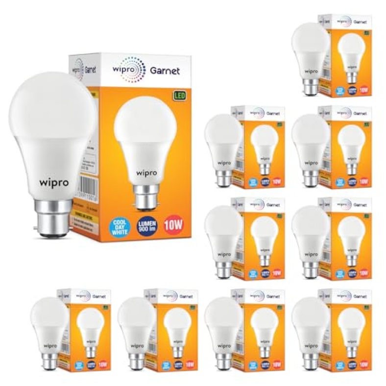 Wipro Garnet 10W Led Bulb For Home & Office |Cool Day White (6500K) | B22 Base|220 Degree Light Coverage |4Kv Surge Protection |400V High Voltage Protection |Energy Efficient | Pack Of 10 is available on Amazon at best discounted online price. Original of this product is ₹ 5500.0. You can buy this product at discounted rate ₹ 549.