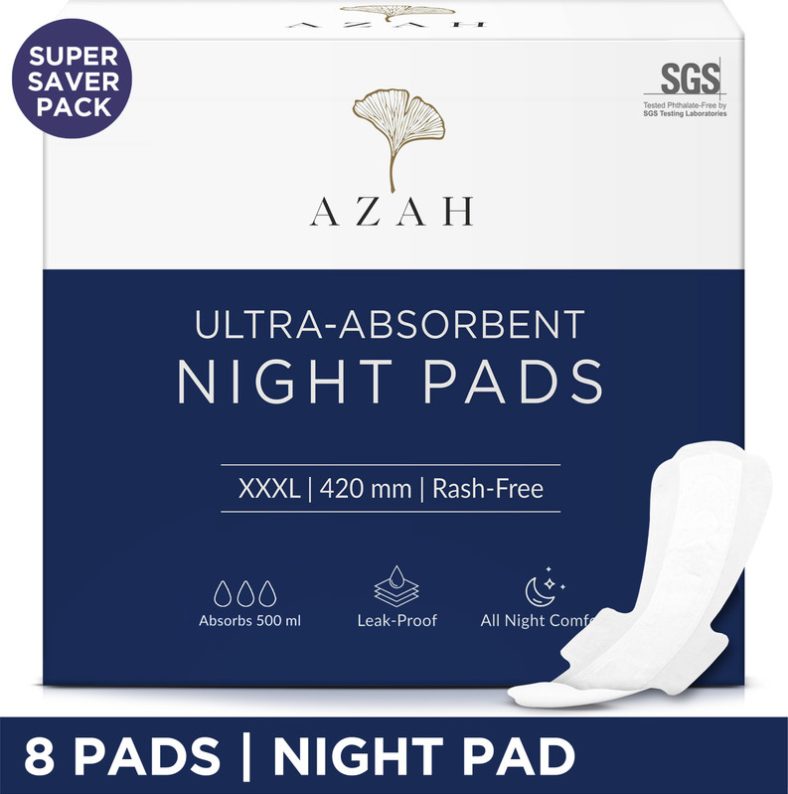 Azah Xxxl Night Pads For Ultra Heavy Flow | Rash Free With 3X Absorbency Sanitary Pad(Pack Of 8) is available on Flipkart at best discounted online price. Original of this product is ₹ 329.0. You can buy this product at discounted rate ₹ 211.