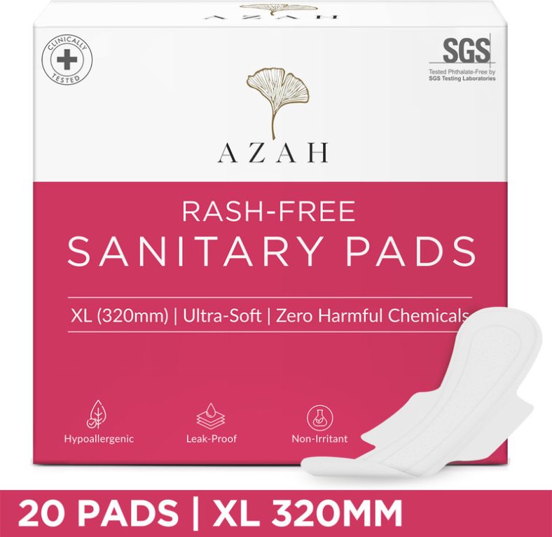 Azah Rash-Free Napkins Xl For Heavy Flow | Leak Proof & Cottony Soft Sanitary Pad(Pack Of 20) is available on Flipkart at best discounted online price. Original of this product is ₹ 339.0. You can buy this product at discounted rate ₹ 279.
