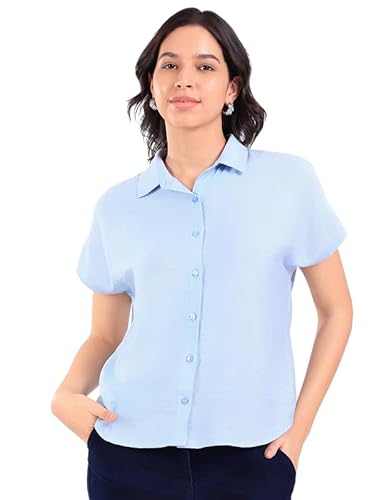 Rianu Sky Blue Textured Chic Shirt | Solid Cap Sleeve Women’S Casual Wear Tops – Xl is available on Amazon at best discounted online price. Original of this product is ₹ 999.0. You can buy this product at discounted rate ₹ 399.