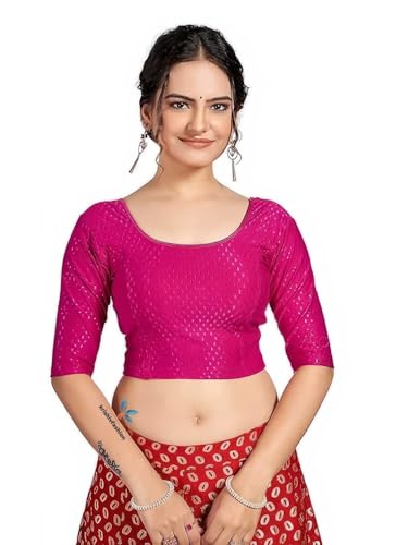 Krishiv Fashion Round Neck | Dobby Cotton Lycra | Stretchable | Elbow Sleeve | Readymade Stylish Saree Blouse For Women (Free Size) (44, Pink) is available on Amazon at best discounted online price. Original of this product is ₹ 1299.0. You can buy this product at discounted rate ₹ 378.