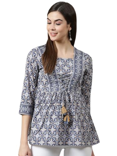 Yuvvik Women’S Navy Blue Cotton Top | Geometric Printed Short Kurti Style Shirt | Stylish For Ladies | Peplum-Inspired Regular Fit Cotton Frock Top is available on Amazon at best discounted online price. Original of this product is ₹ 1999.0. You can buy this product at discounted rate ₹ 449.