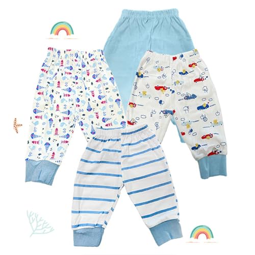 Baby Story Cotton Pajama Pants Combo Pack | Unisex Soft Cotton Track Pants For Newborns & Infants | Comfortable, Stylish, Multicolor Designs | Pack Of 4 (0-3 Months, Sky Blue)