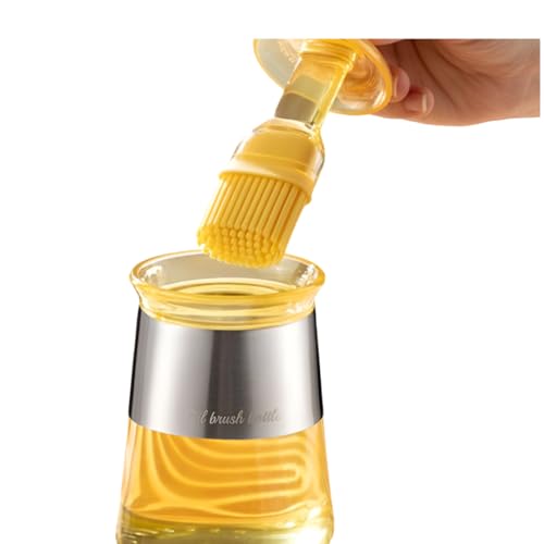 Oil Dispenser Bottle With Silicone Brush | Heat-Safe Silicone Bristles | Glass Container With Wide Mouth | Suitable For Applying Oil On Food And Cookware
